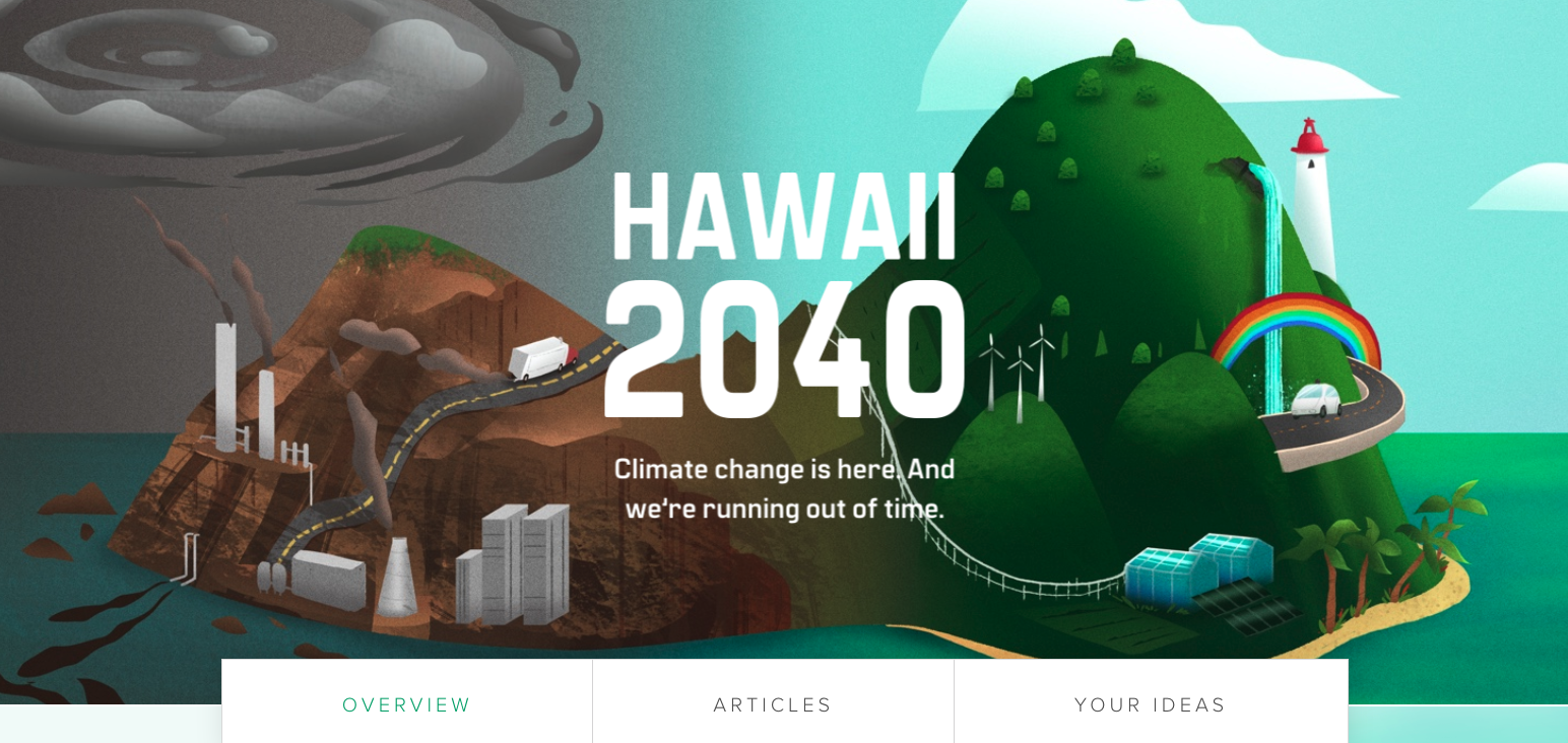 In a yearlong series that combined articles, citizen-fueled ideas, and resources for further research, Honolulu Civil Beat told the story around climate change — an issue that can often feel like a looming existential crisis — in a way that was more personal and experimental. The storytelling models and engagement strategies, rather than being icing on the cake, were key ingredients for making the project come alive for citizens in a much more tangible way.